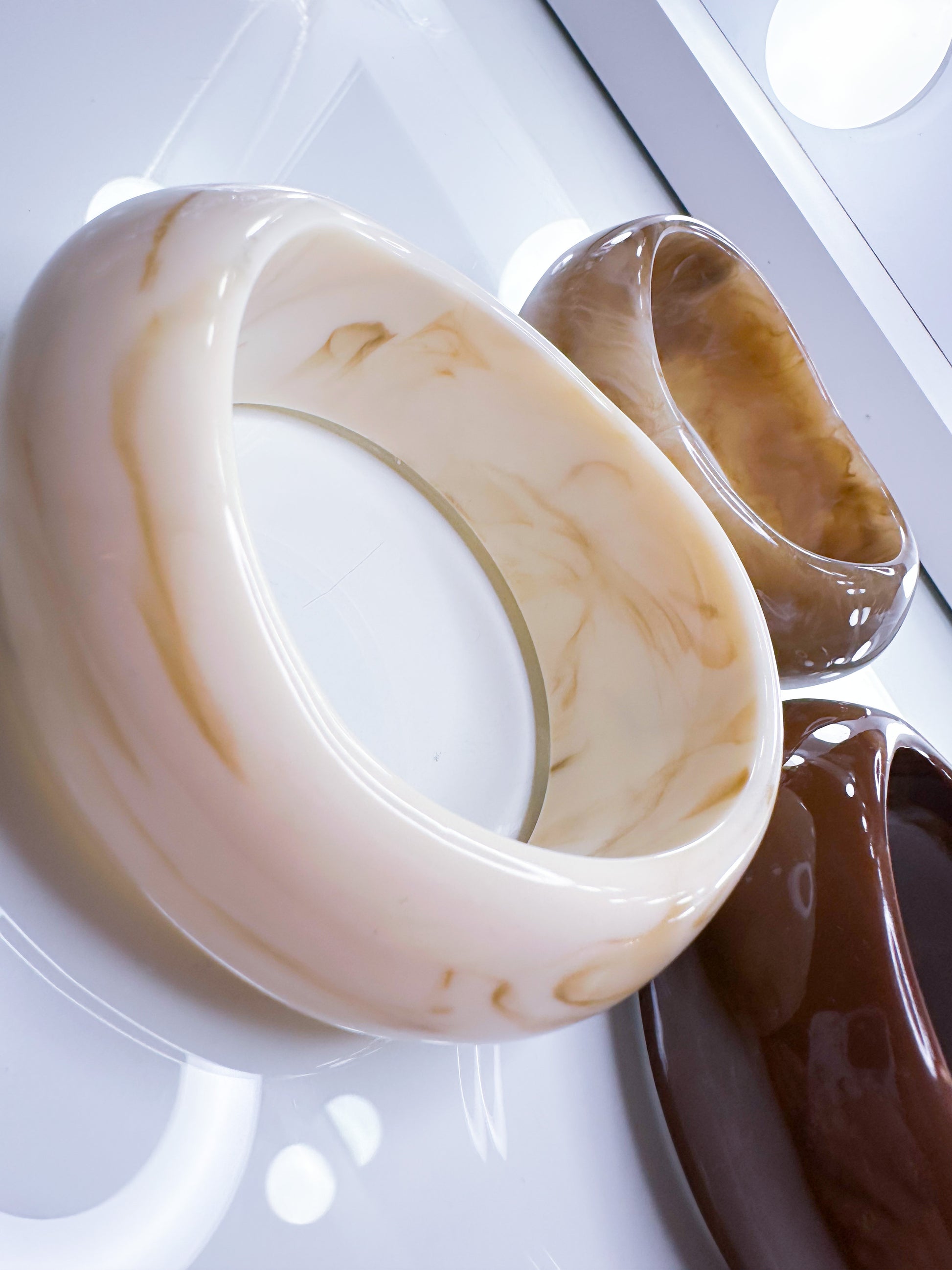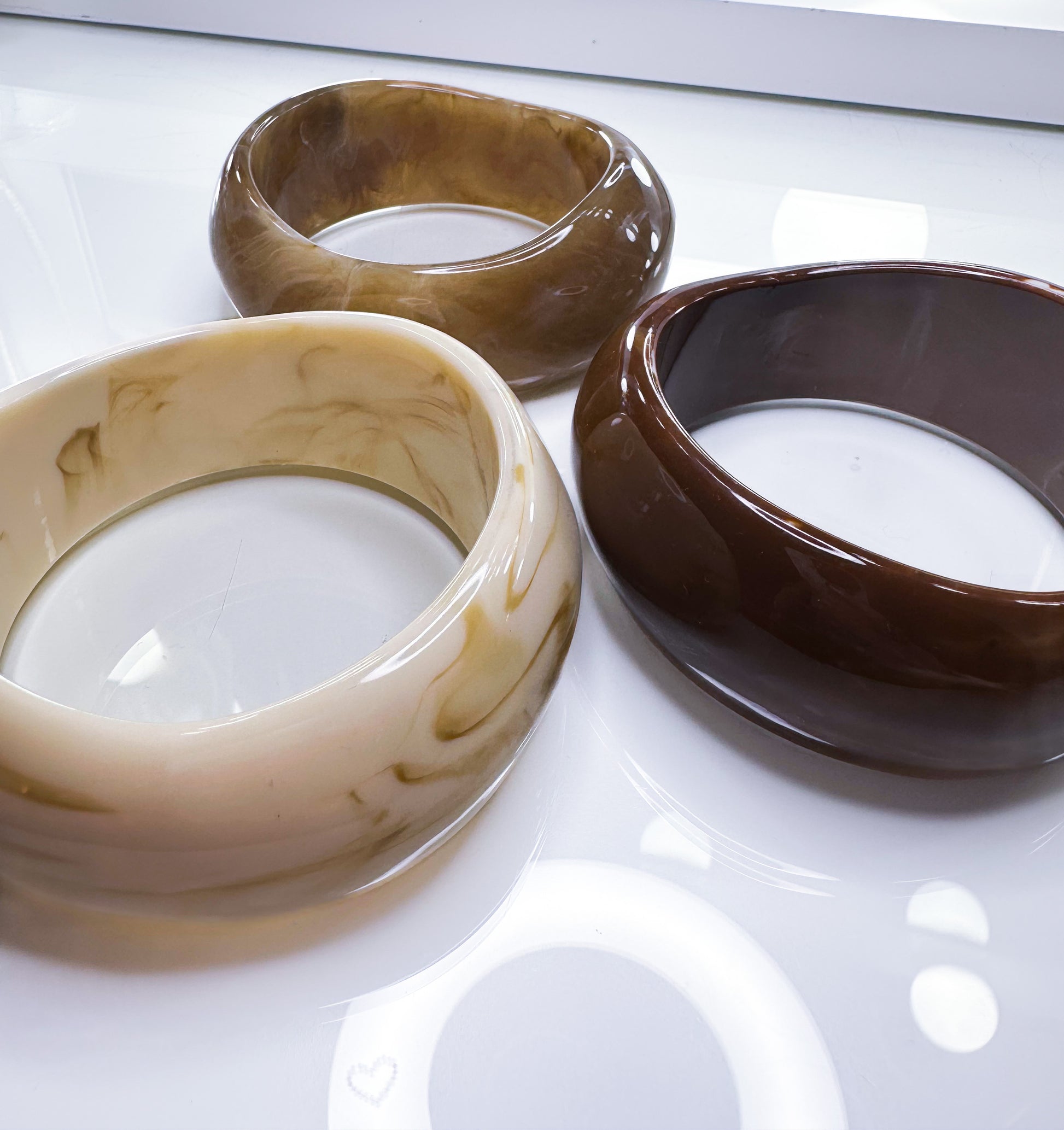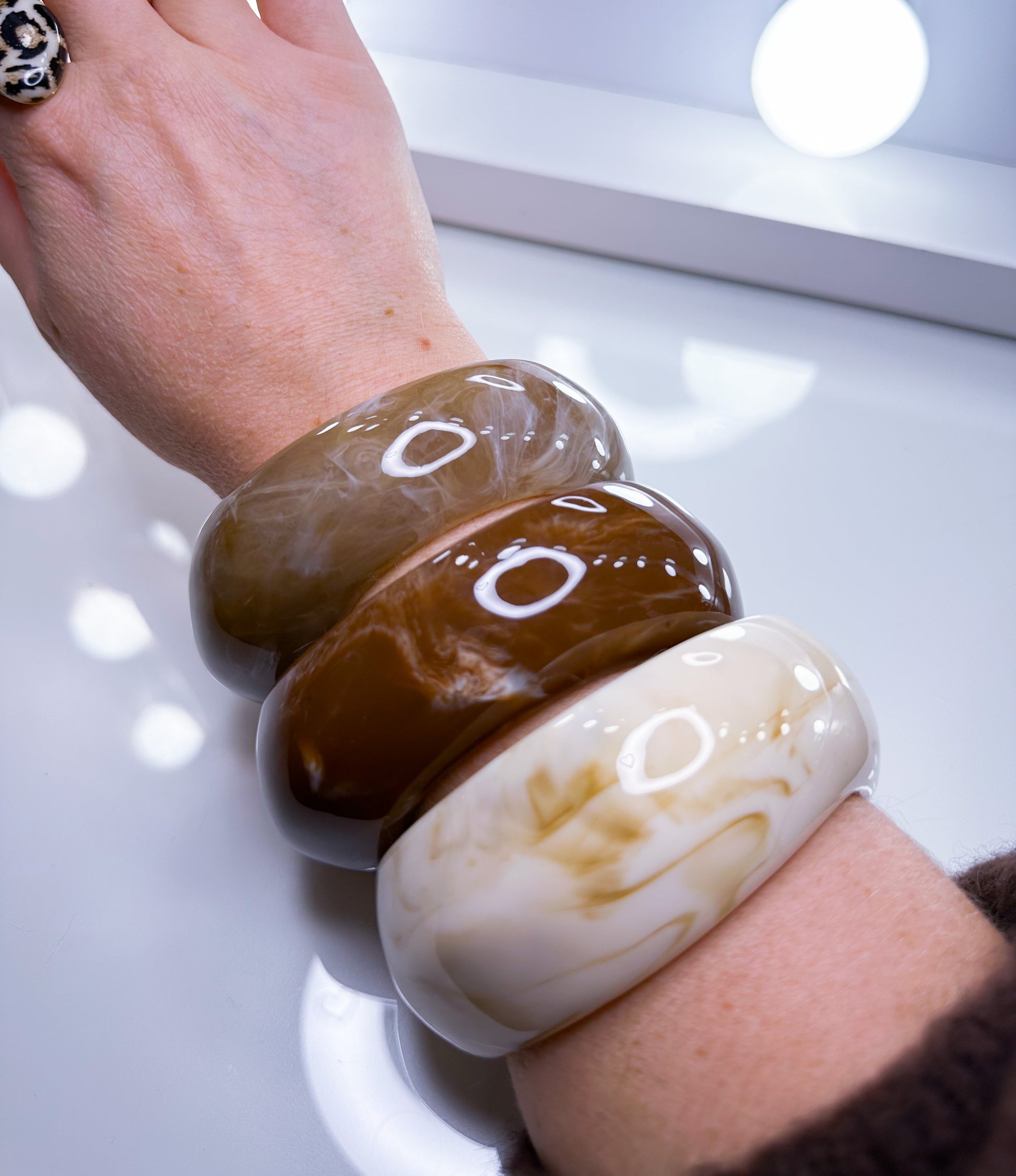 Dieses edle Armreif vereint zeitlose Eleganz mit modernem Statement-Charme. Die breiten, glänzenden Armreifen in marmorierter Optik wirken wie kleine Kunstwerke und setzen dein Outfit perfekt in Szene.