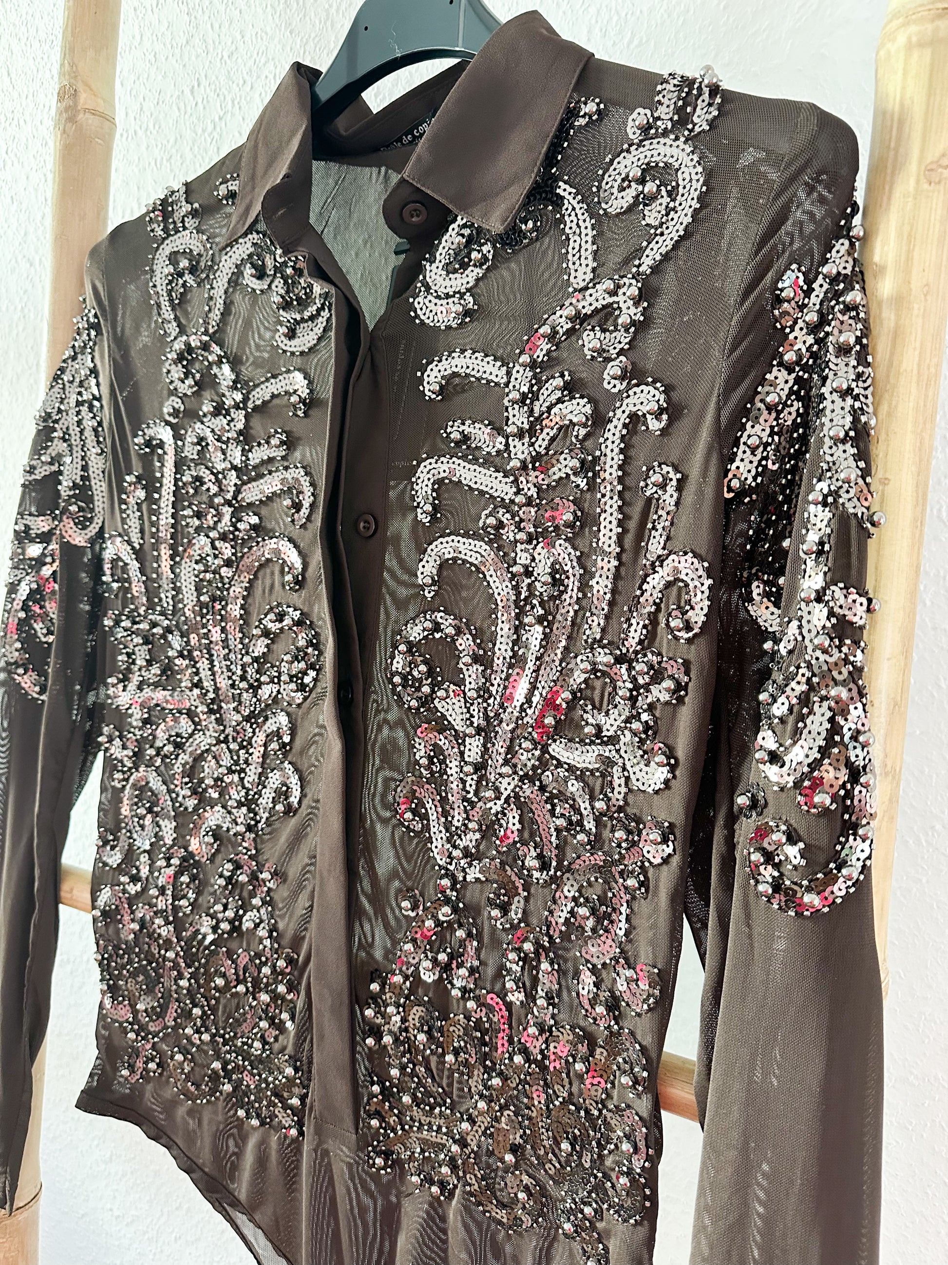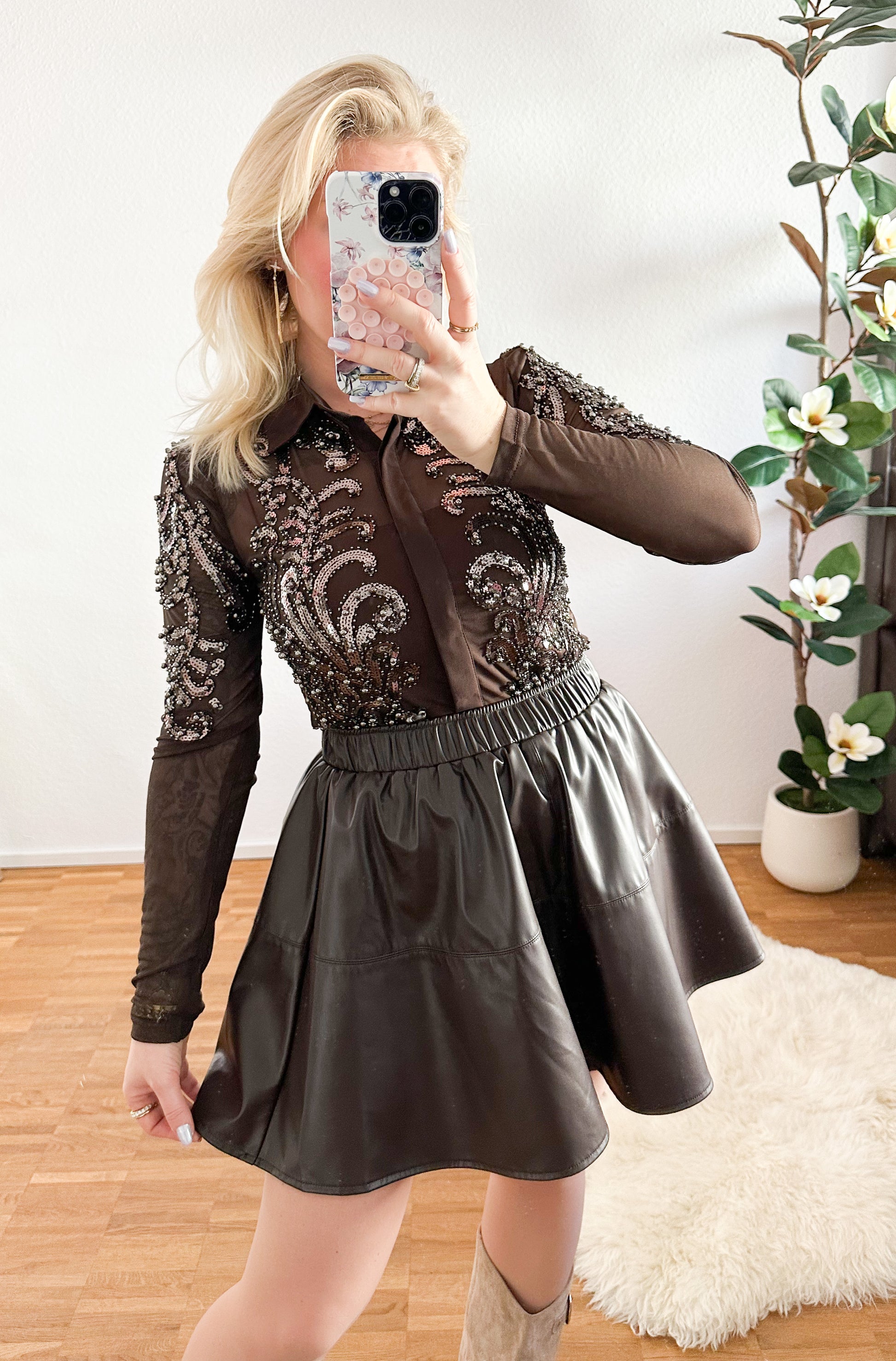Dieser elegante Langarm-Body besticht durch seine unaufdringliche Eleganz. Transparenter Stoff mit bunt funkelnden Allover-Glitzersteinchen. Die schmeichelnde Steinchen-Musterung betont Ihre wunderschöne Silhouette und sorgt für funkelnde Augenblicke. Stehkragen. Druckknopf-Verschluss. Er bietet Ihnen vielseitige Kombinierungsmöglichkeiten. Sie kreieren Ihren eigenen verführerischen Look. Model trägt regulär Größe 36 (S) und ist 159 cm groß.