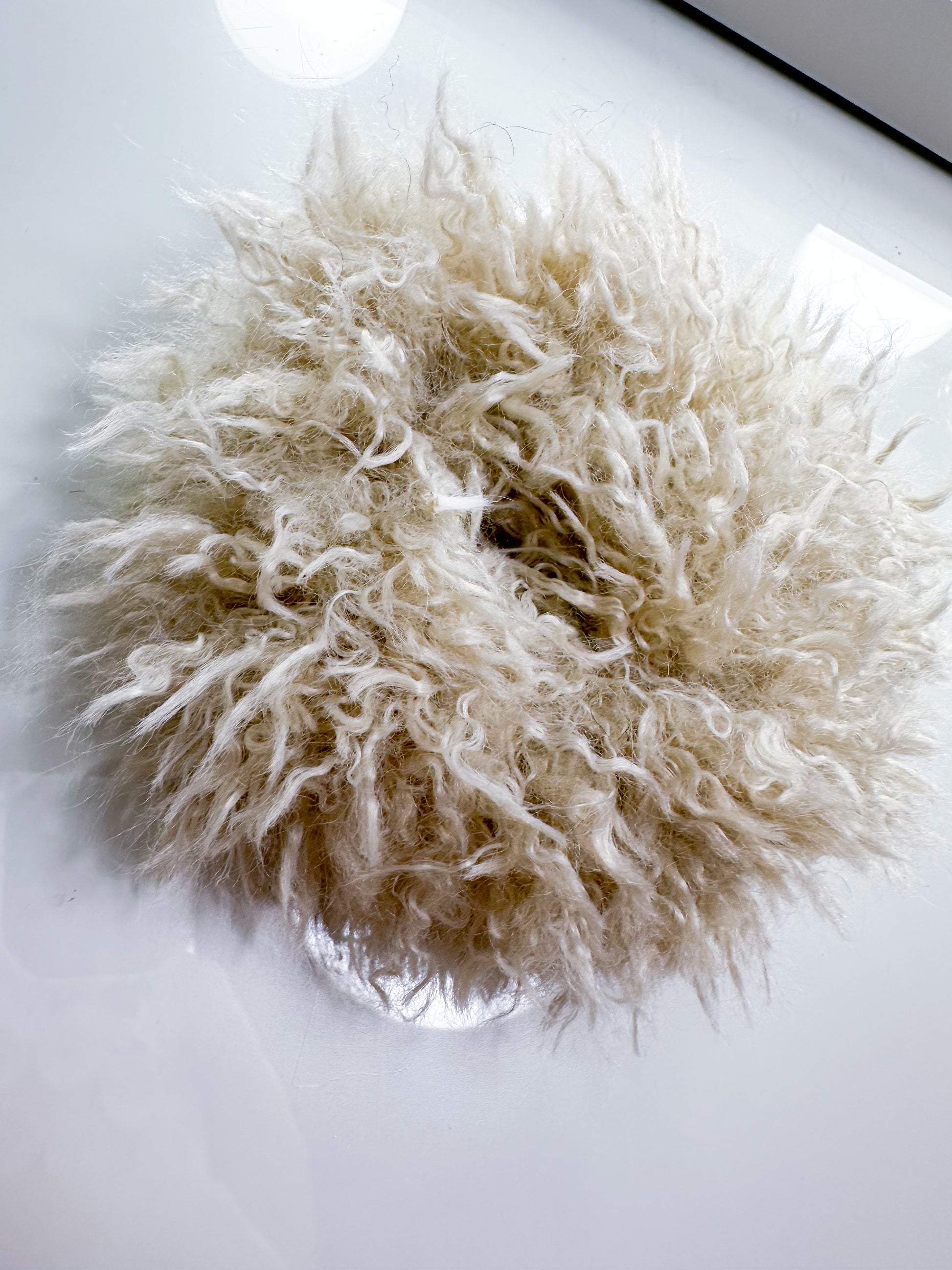 Zuckersüßer Woll-Scrunchie. Er eignet sich für alle Arten von Haaren und lässt sich in vielerlei Frisuren einbinden. Ein Scrunchie, der nicht nur einen wunderschönen Look zaubert, sondern auch noch extra schonend und liebevoll zu Ihrem Haar ist. Reduziert Haarbruch und Ziehen. Durch den Satin-Stoff kommt es zu keinen rauen Reibungen, er schmiegt sich Ihrem Haar perfekt an. Ein absolutes must-have für jeden Haartyp. In verschiedenen Farben erhältlich.