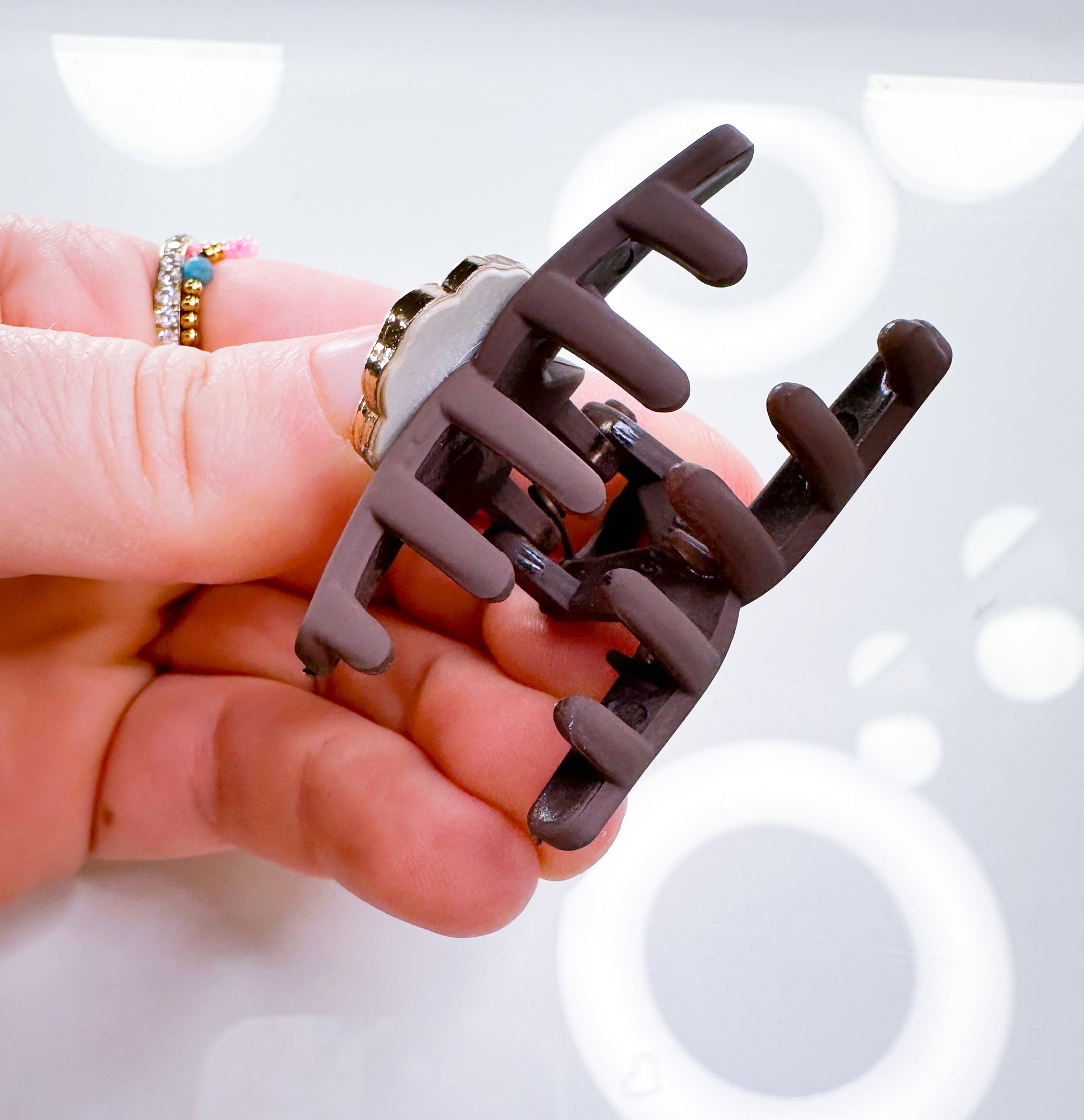 Super charmante Mini Haarklammer. Glänzende und Matte Oberfläche mit Logo-Rose. Einfacher Griff. Sie sorgt für einen angenehmen Sitz und mit ihr sind Sie das lästige Ziepen von Klammern in den Haaren los. Handmade. Verleihen Sie Ihren Haaren mehr Lebendigkeit und dekorieren Sie Ihre Haare mit dieser Haarklammer. Sie hat die perfekte Größe um Ihre Haare in einer halben Knolle, in einem Knoten oder einen anderen schönen Stil zu halten. Sie kreieren mit ihr Ihren eigenen Look. In verschiedenen Farben erhältlich.