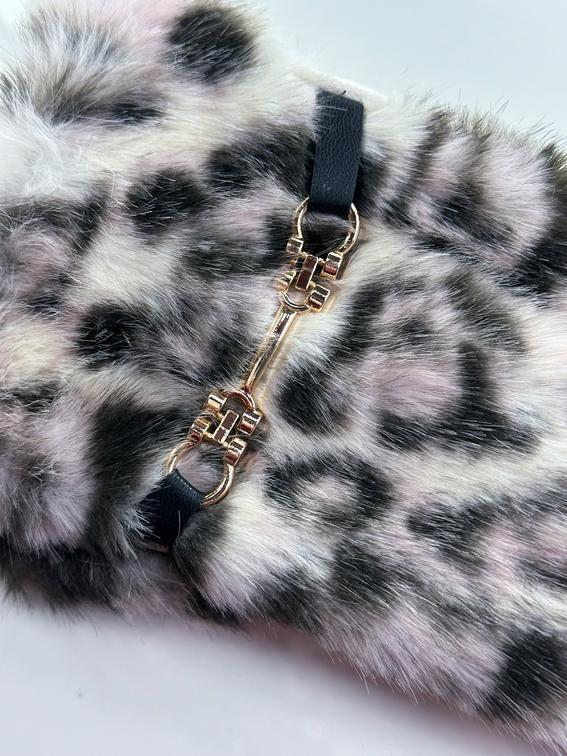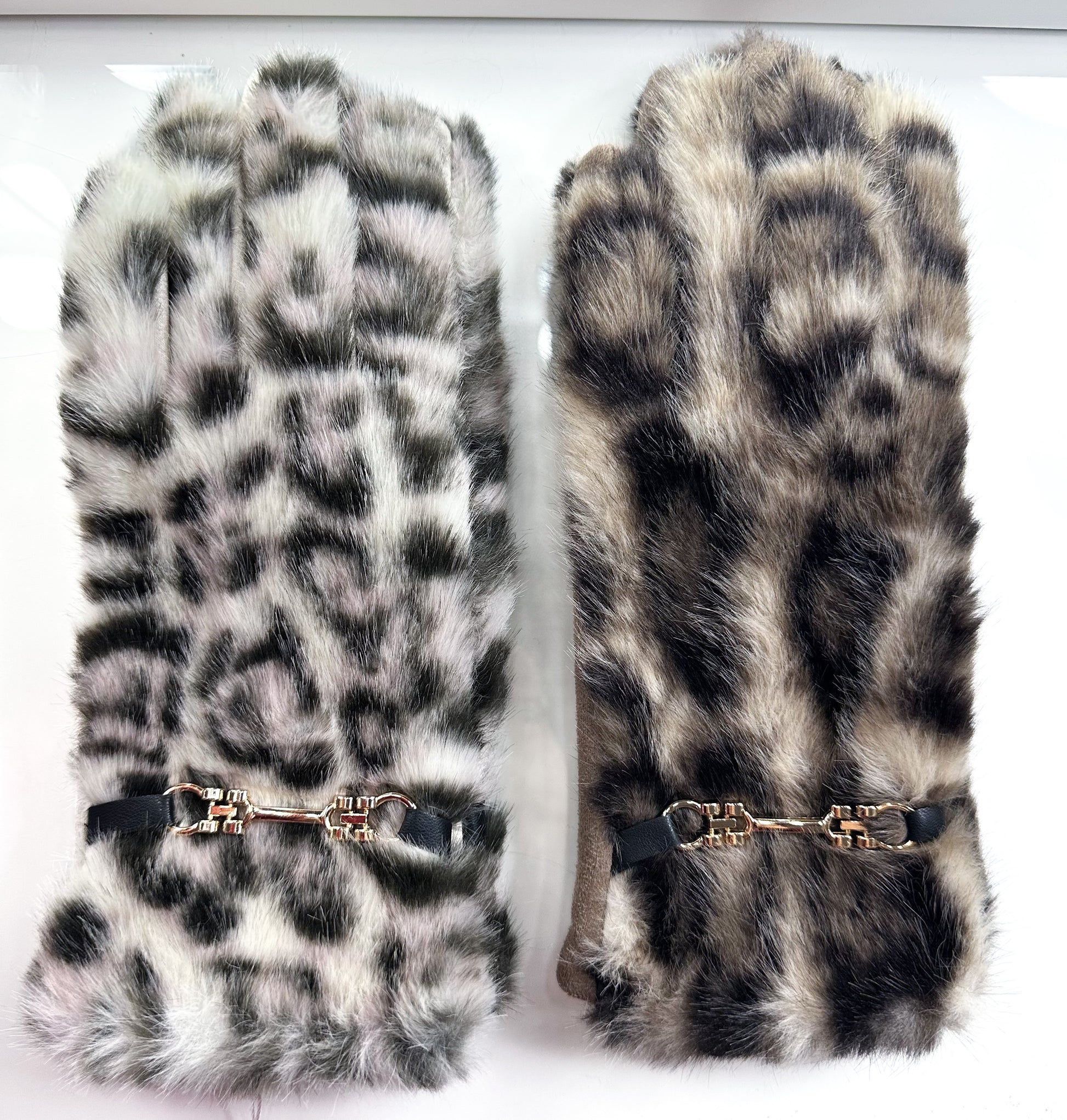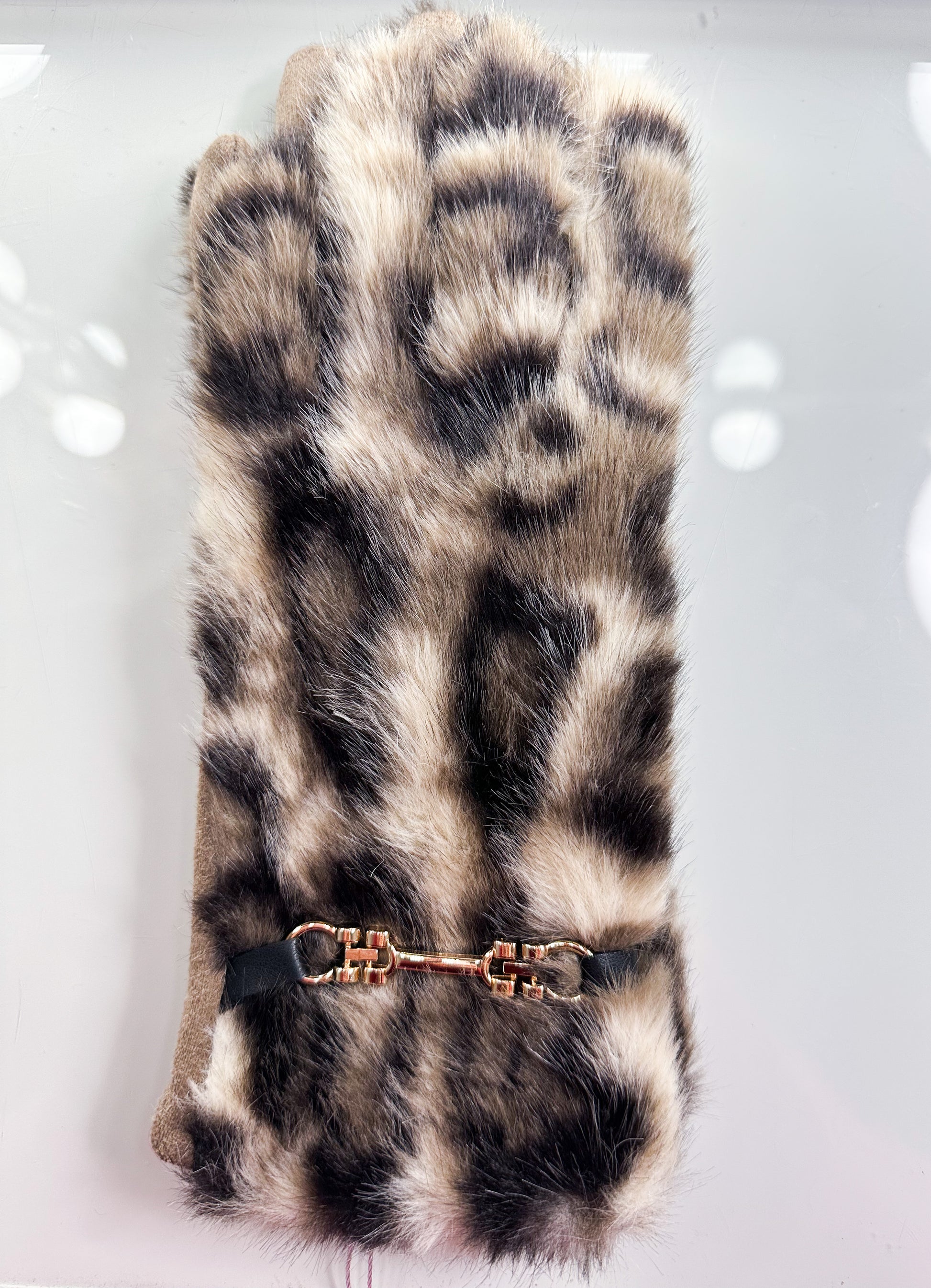 Das weiche Kunstfell in angesagtem Leopardenmuster sorgt für einen modischen Winterlook.