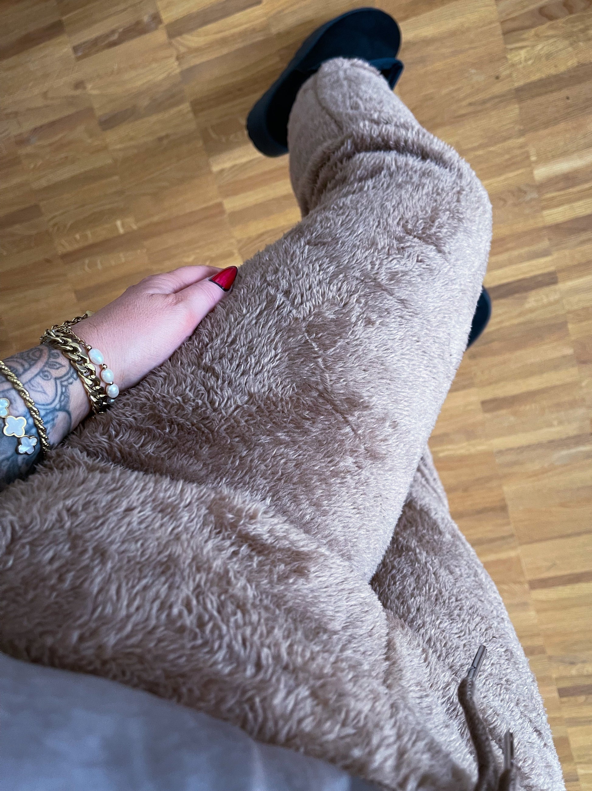 Die absolut superbequeme Teddy Hose. Super weiches Material. Perfekt für kuschelige Tage. Bequemer Schnitt, gerippter und elastischer Gummibund mit Kordelzug, seitliche Eingrifftaschen. Elastische Bündchen an den Ärmelenden und Beinenden verhindern lästiges Verrutschen. Diese tolle Teddyhose zaubert nicht nur eine schöne Figur, sondern ist als Basic im Kleiderschrank unverzichtbar. Model trägt regulär Größe 36 (S) und ist 159 cm groß.