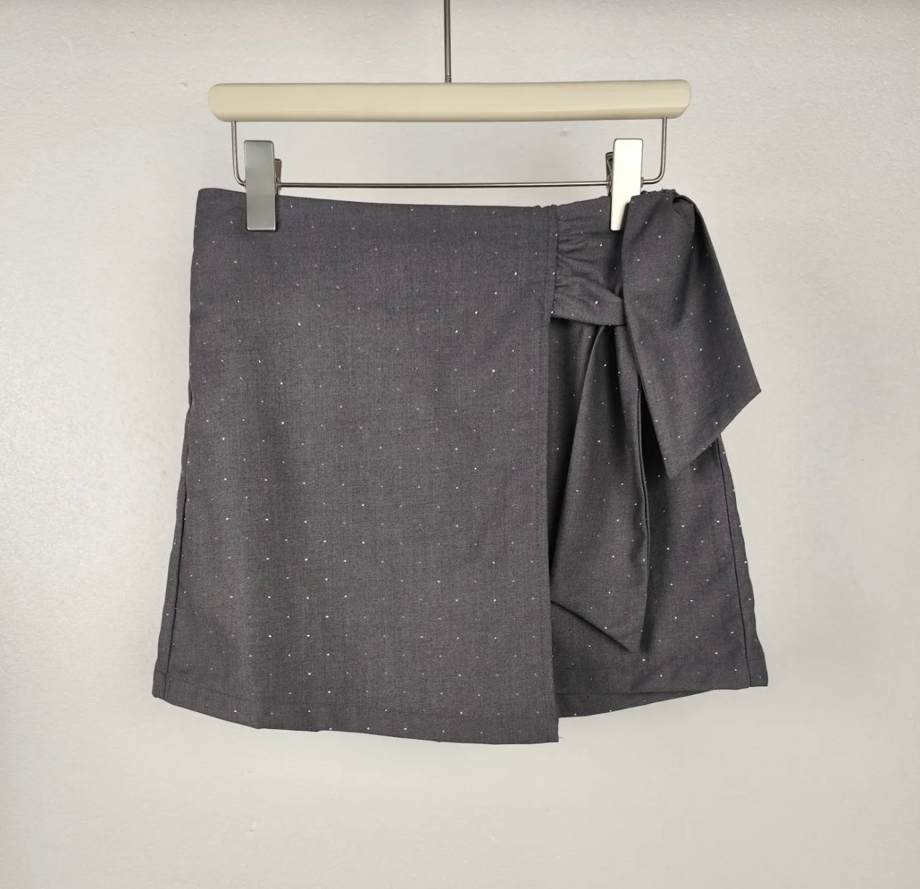 ✨ Minirock mit Schleifendetail & Strass – Schwarz oder Grau