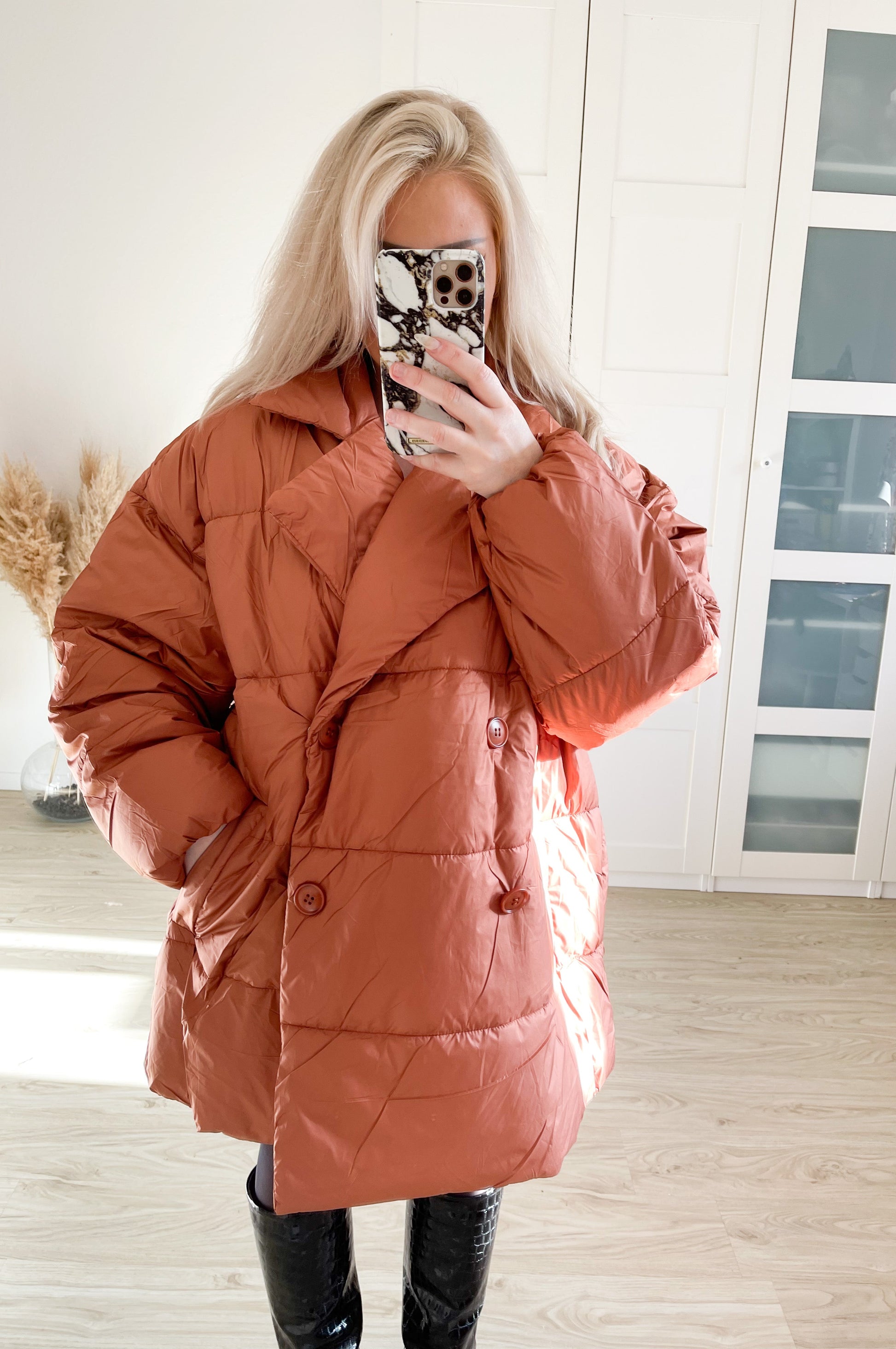 Super stylische Oversized-Winterjacke mit großen marmorierten Knöpfen. Steppdesign. Reverskragen. Überschnittene Schultern mit tief angesetzten Bomber-Ärmeln. Elastischer Gummibund an den Ärmelenden. Zusätzlicher Druckknopfverschluss. Seitliche Eingrifftaschen. Diese tolle Winterjacke hält Sie nicht nur warm, sondern fühlt sich auch total kuschelig an. Sie bietet Ihnen vielseitige Kombinierungsmöglichkeiten und engt Sie auch mit einem Pullover darunter nicht ein. Model trägt regulär Größe 36 (S) und ist 159 cm groß.