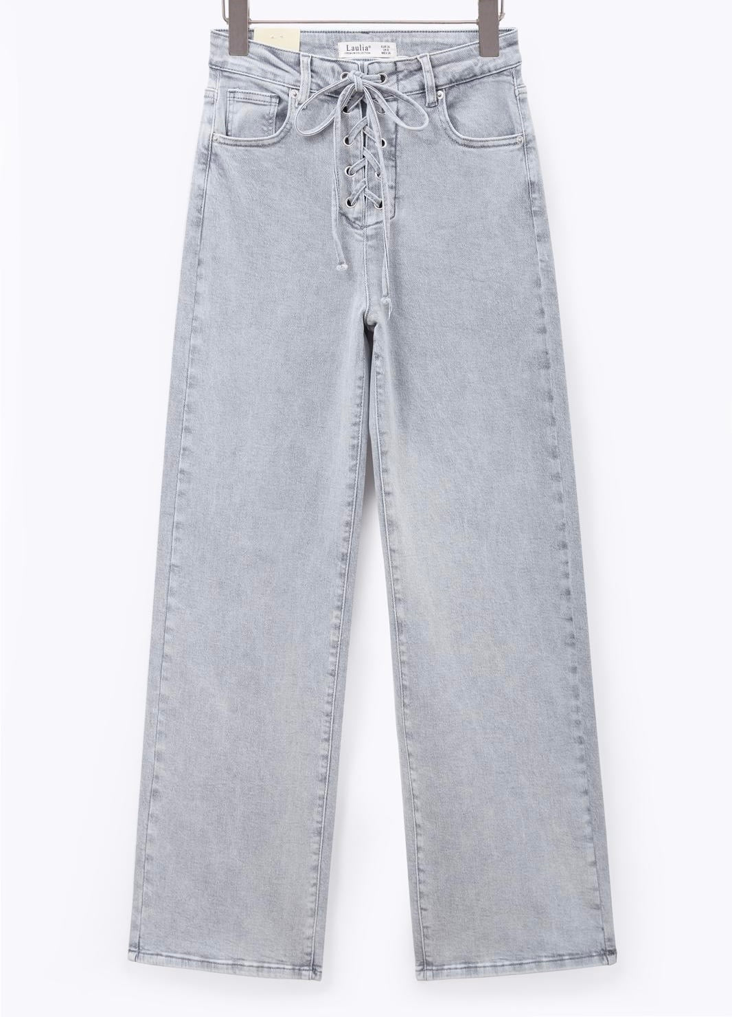 💙 Lace-Up High Waist Jeans – Blau & Grau