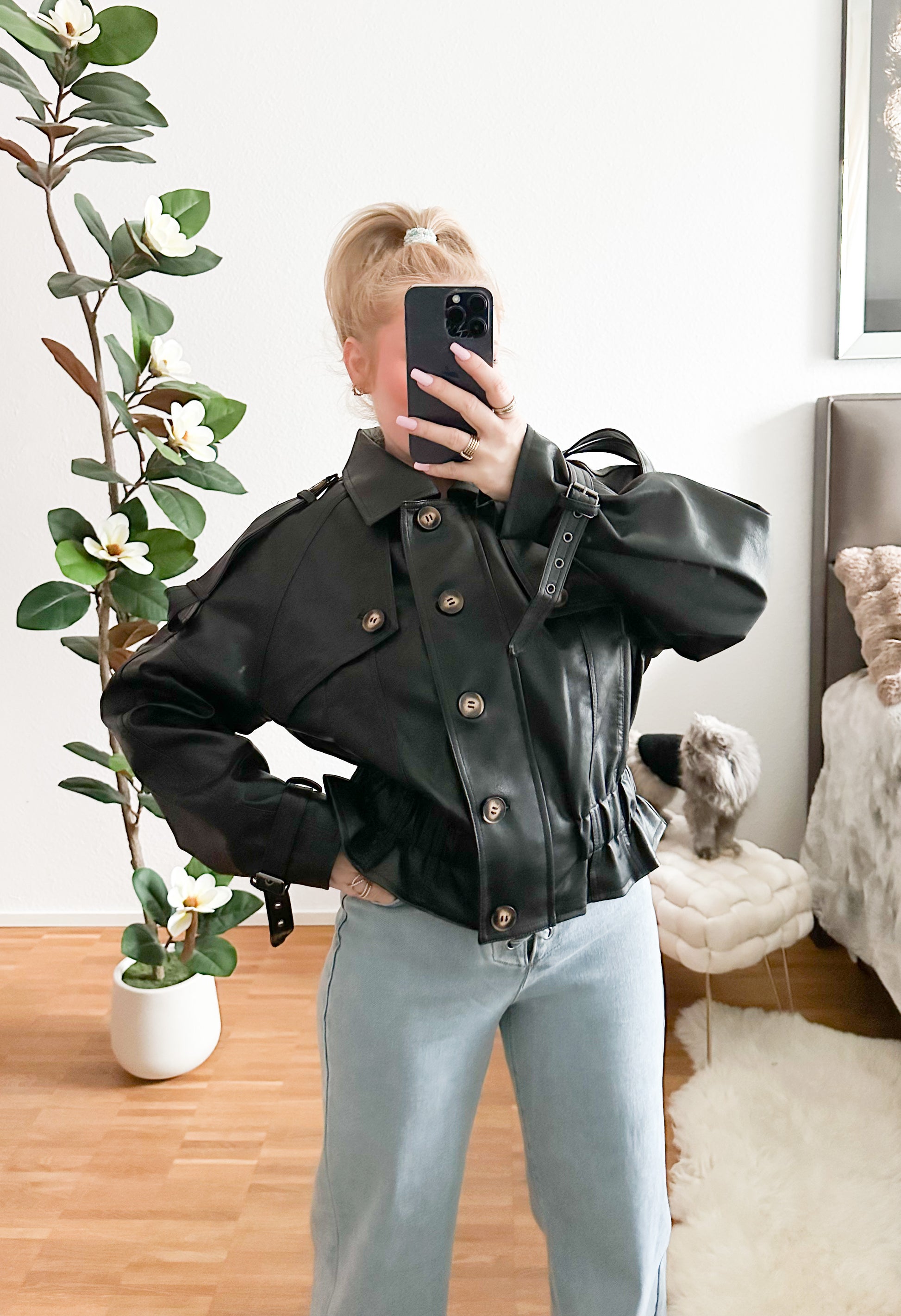 🖤 PU Leder Jacke mit Taillenbund & Statement-Knöpfen