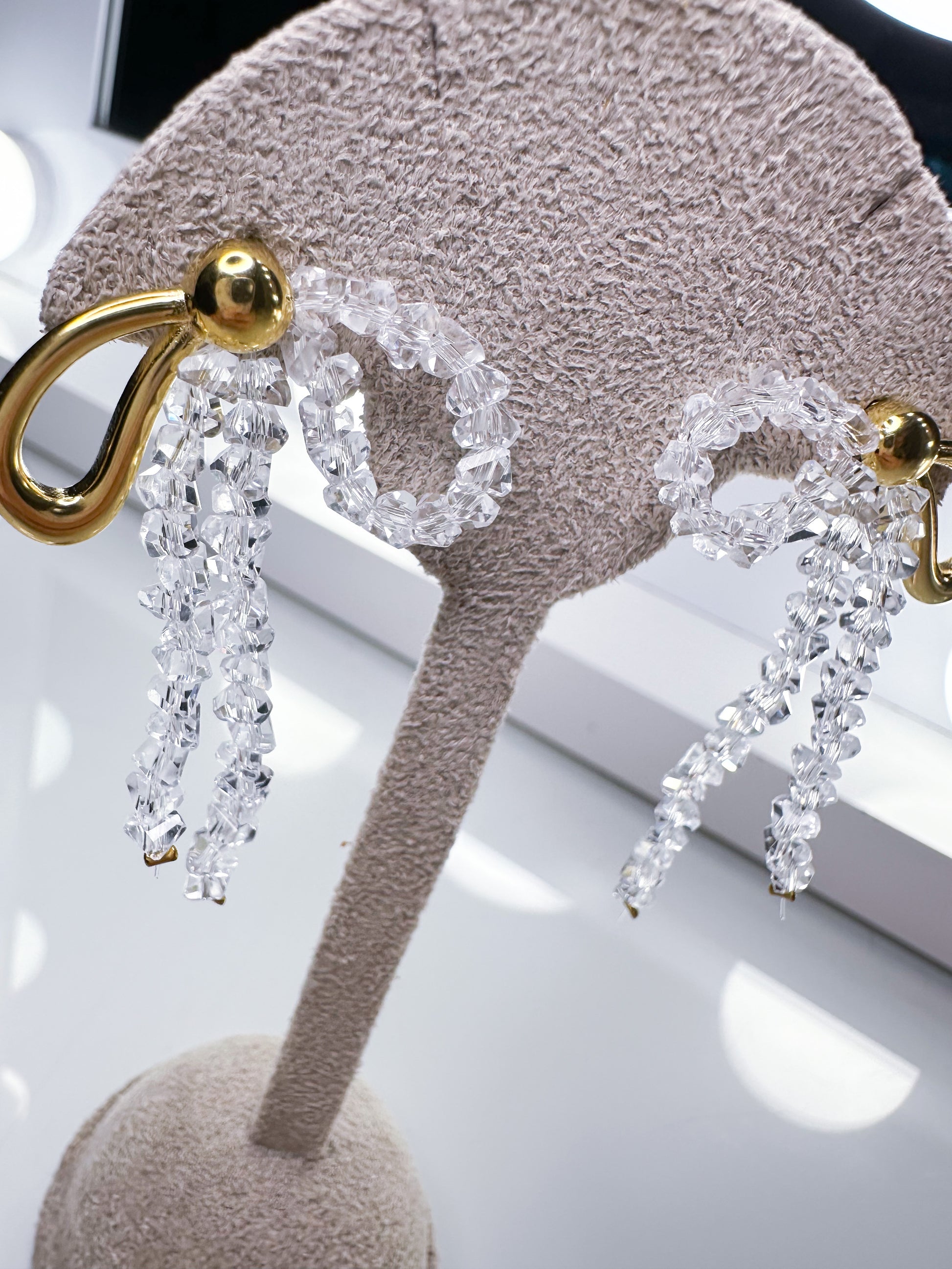 Diese super schicken Schleifen-Ohrringe, bestechen durch ihre unaufdringliche Eleganz. Metallelemente, 14K vergoldet. Sie sind zu vielen Anlässen trag- und kombinierbar. Kombinieren Sie dazu zum Beispiel eine passende Halskette. Sie kreieren Ihren eigenen funkelnden Look. Wasserfest, Nickel- und Bleifrei.