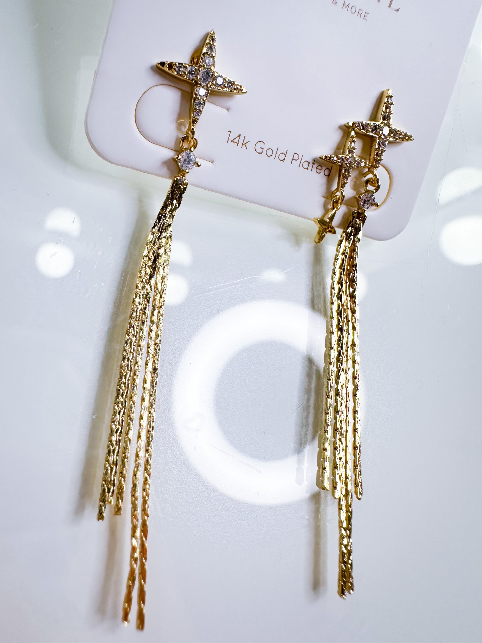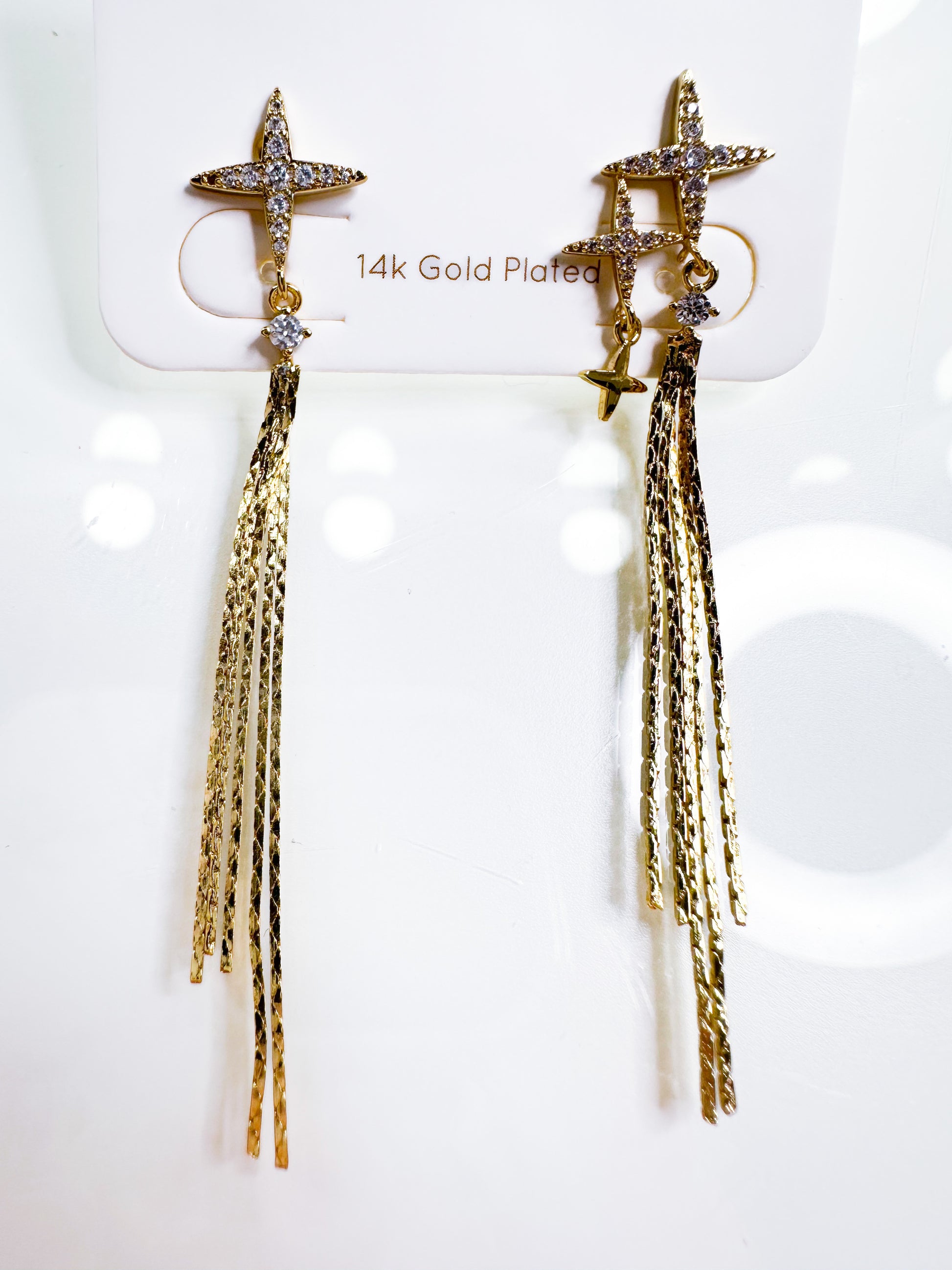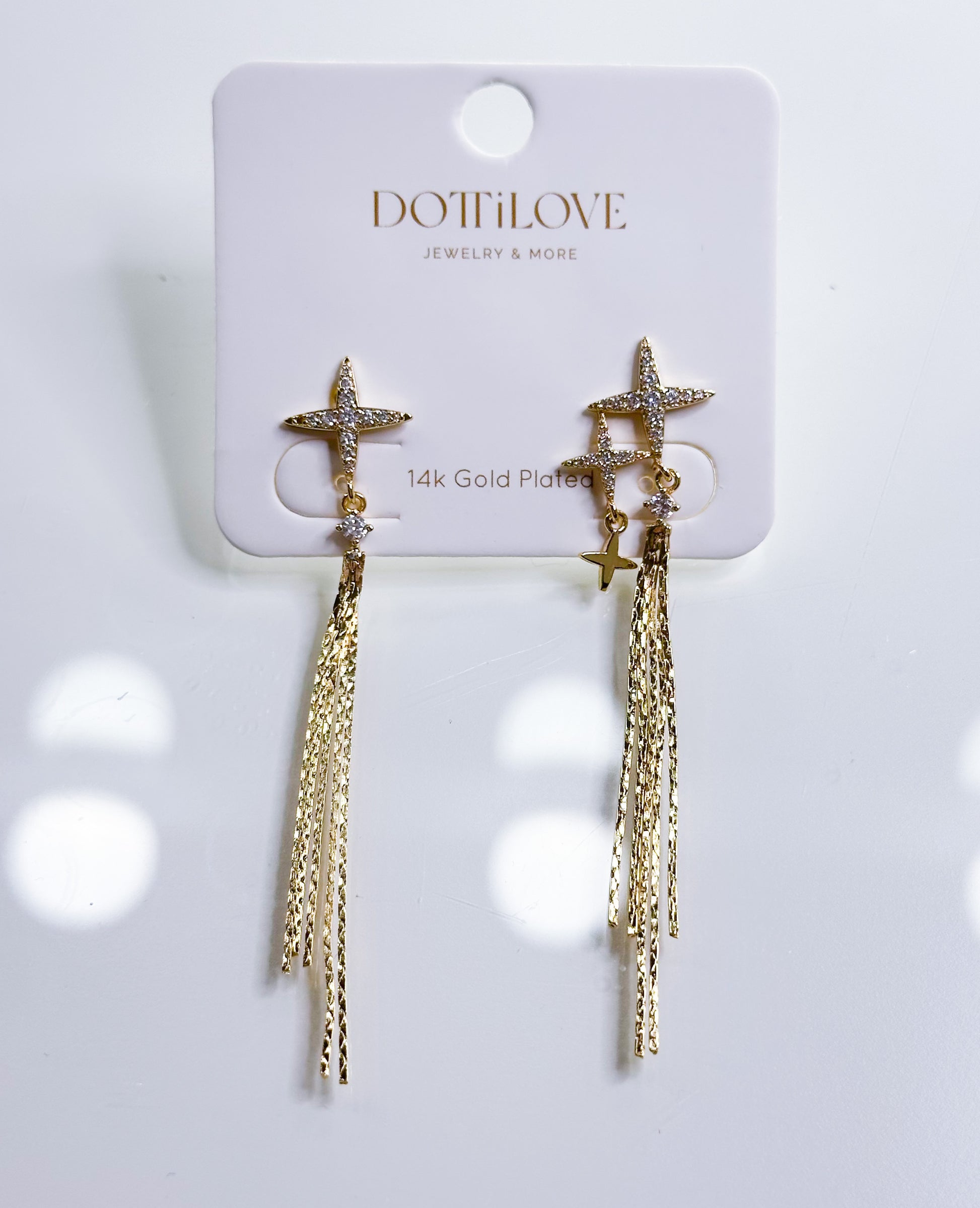 ✨ Produktbeschreibung – 14K Gold Plated Ohrringe „Starfall“ mit Zirkonia & Kettenanhang