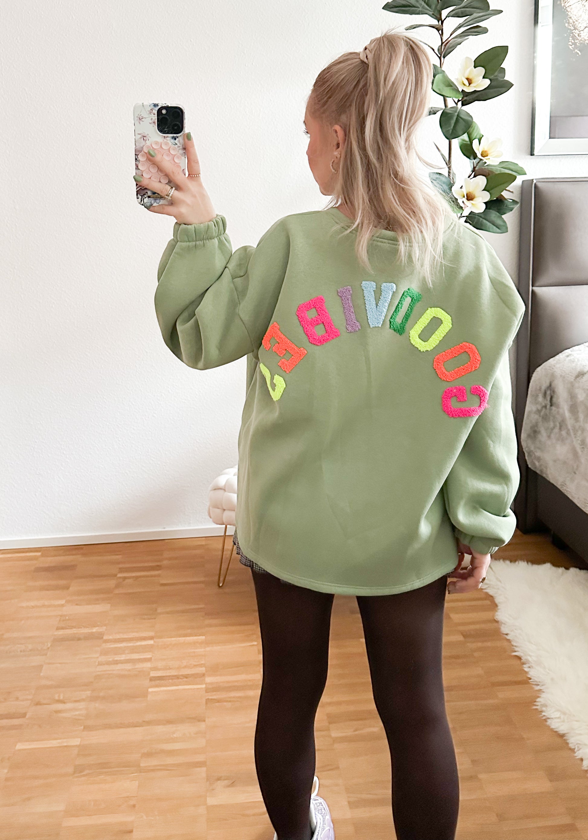 🧸 Pullover mit Teddy-Schrift – Cozy Good Vibes