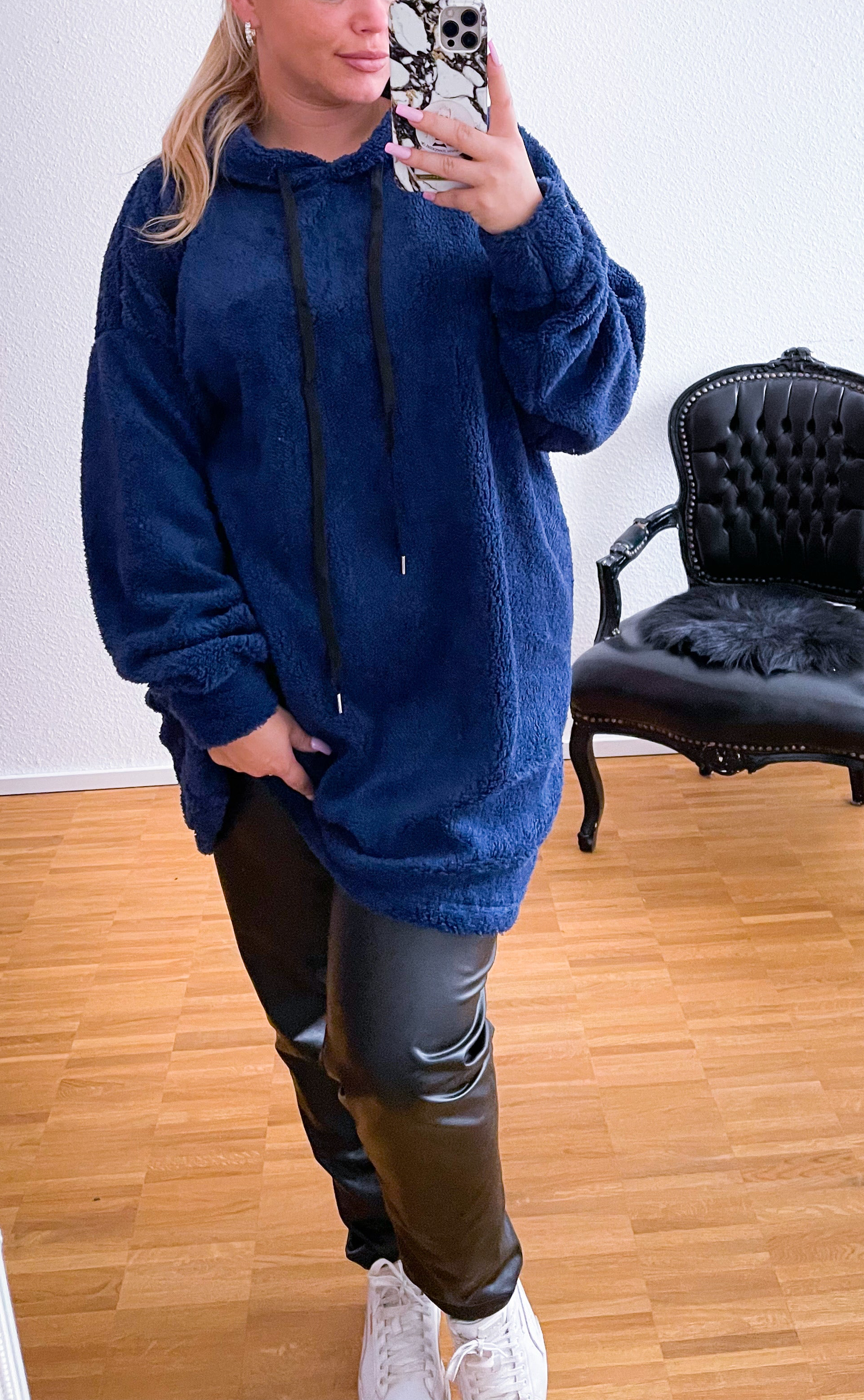 Langer Oversized-Teddy-Hoodie mit Kapuze. Lässiger bequemer Schnitt. Herabfallende Schulterpartie. Lockere Ärmel mit leicht gerippten Ärmelenden. Sie kreieren Ihren eigenen Look. Model trägt regulär Größe 40(L) und ist 163cm groß.