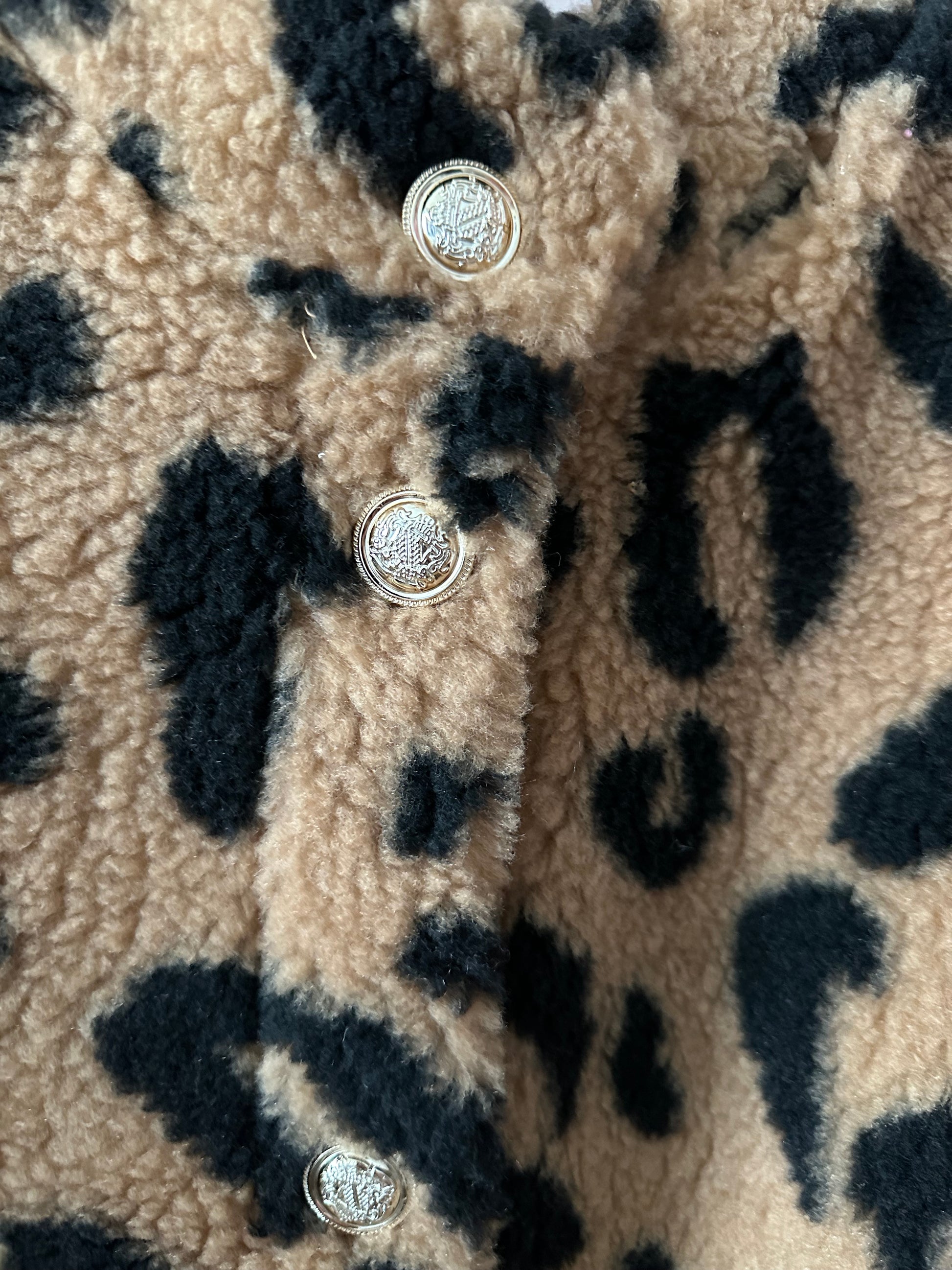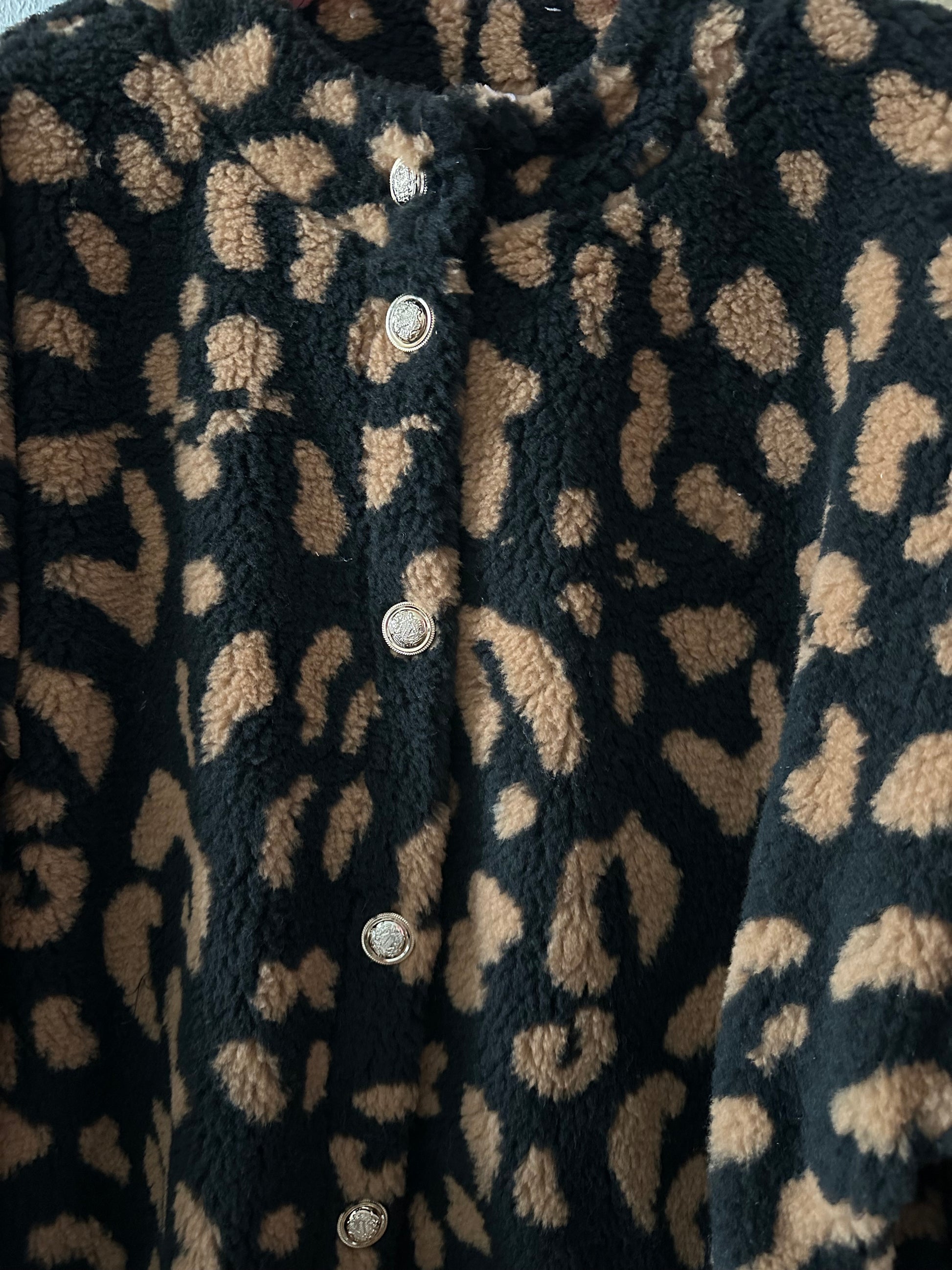 Die Leopard Teddy Jacke ist ein absolutes Statement-Piece für die kalte Jahreszeit. Durch den auffälligen Leo-Print, die goldenen Knöpfe und den weichen Teddystoff verbindet sie maximalen Komfort mit modernem Fashion-Statement.