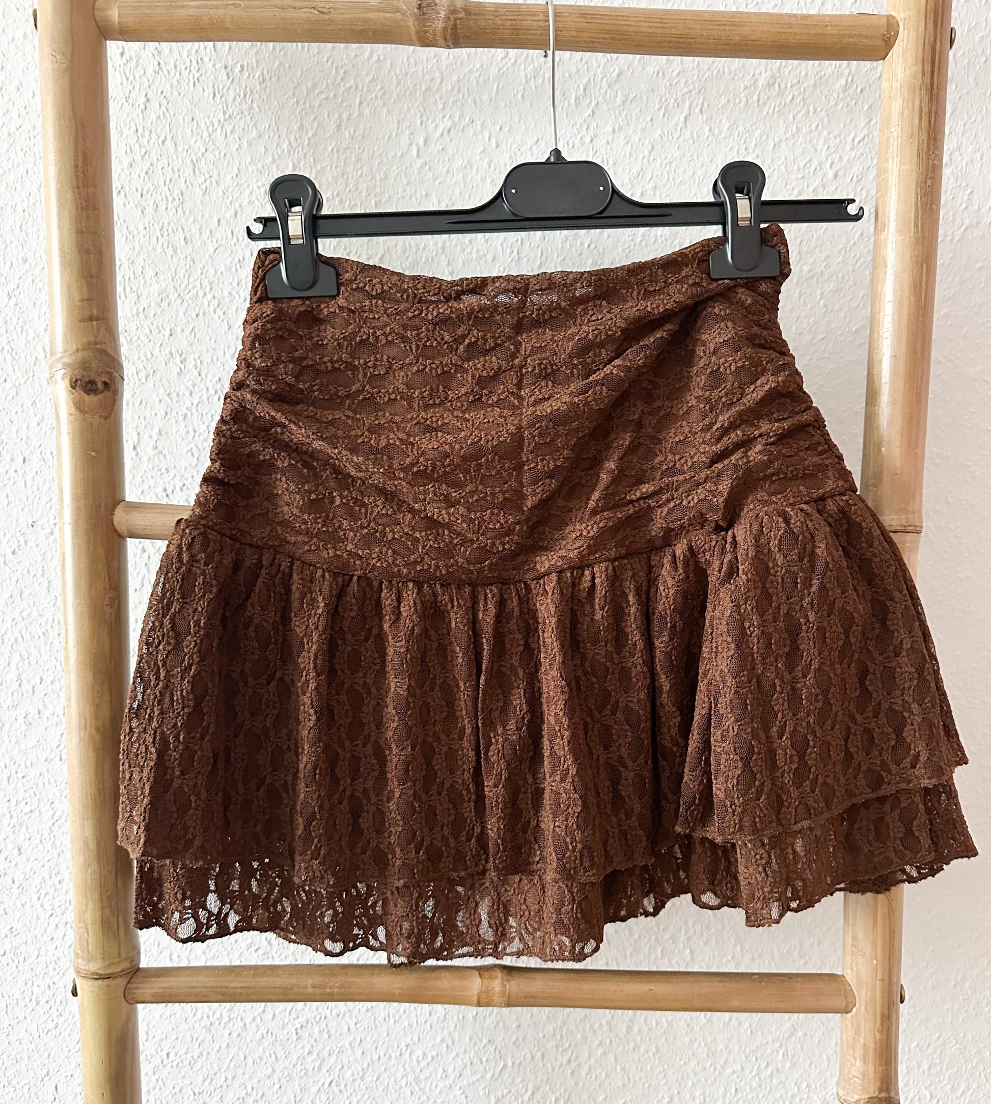Brauner Spitzenrock mit Volant – Feminin, verspielt & absolut im Trend